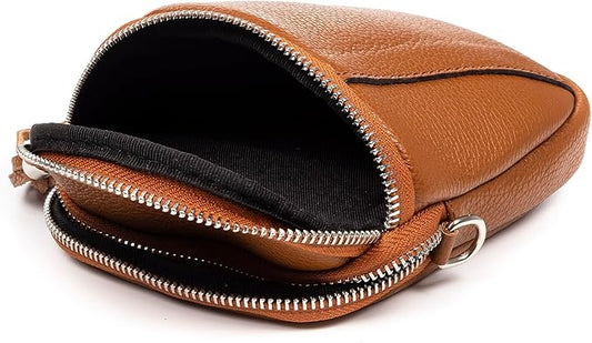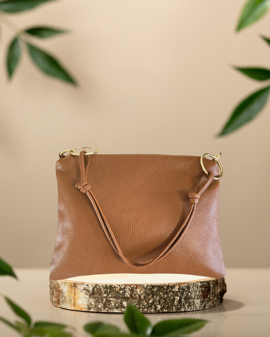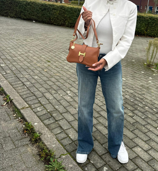Lederen schoudertas met 2 vakjes enk ritssluiting.