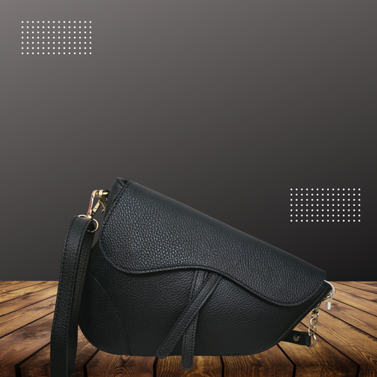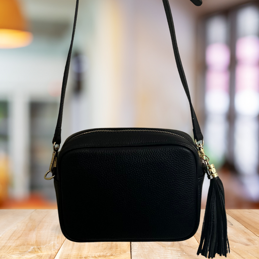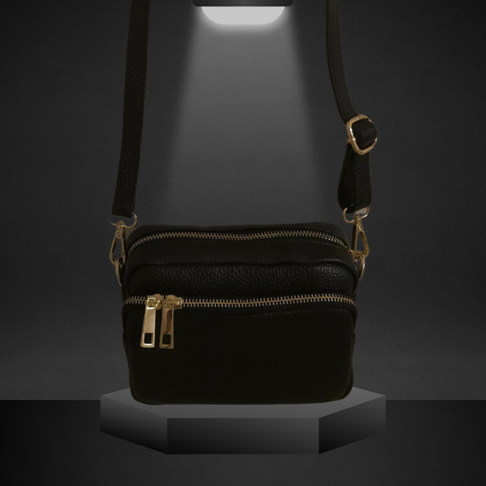 Zwarte leren Crossbody handtas met gouden ritssluiting