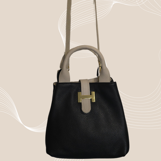 De Multifunctionele Leren Handtas in Zwart/Beige