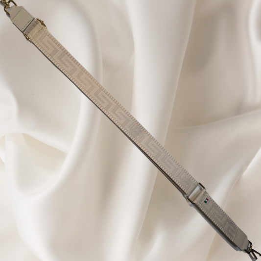Bagstrap beige, with patterns (black and silver)