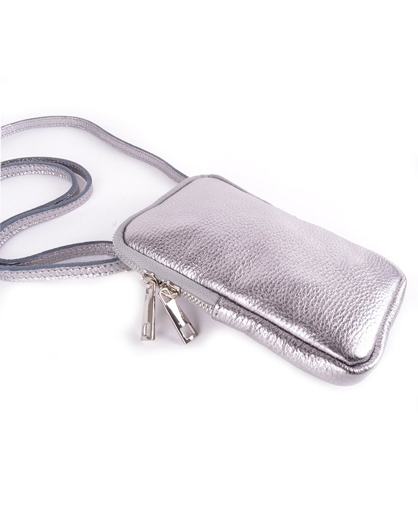 Lederen schoudertasje | Lang Metallic