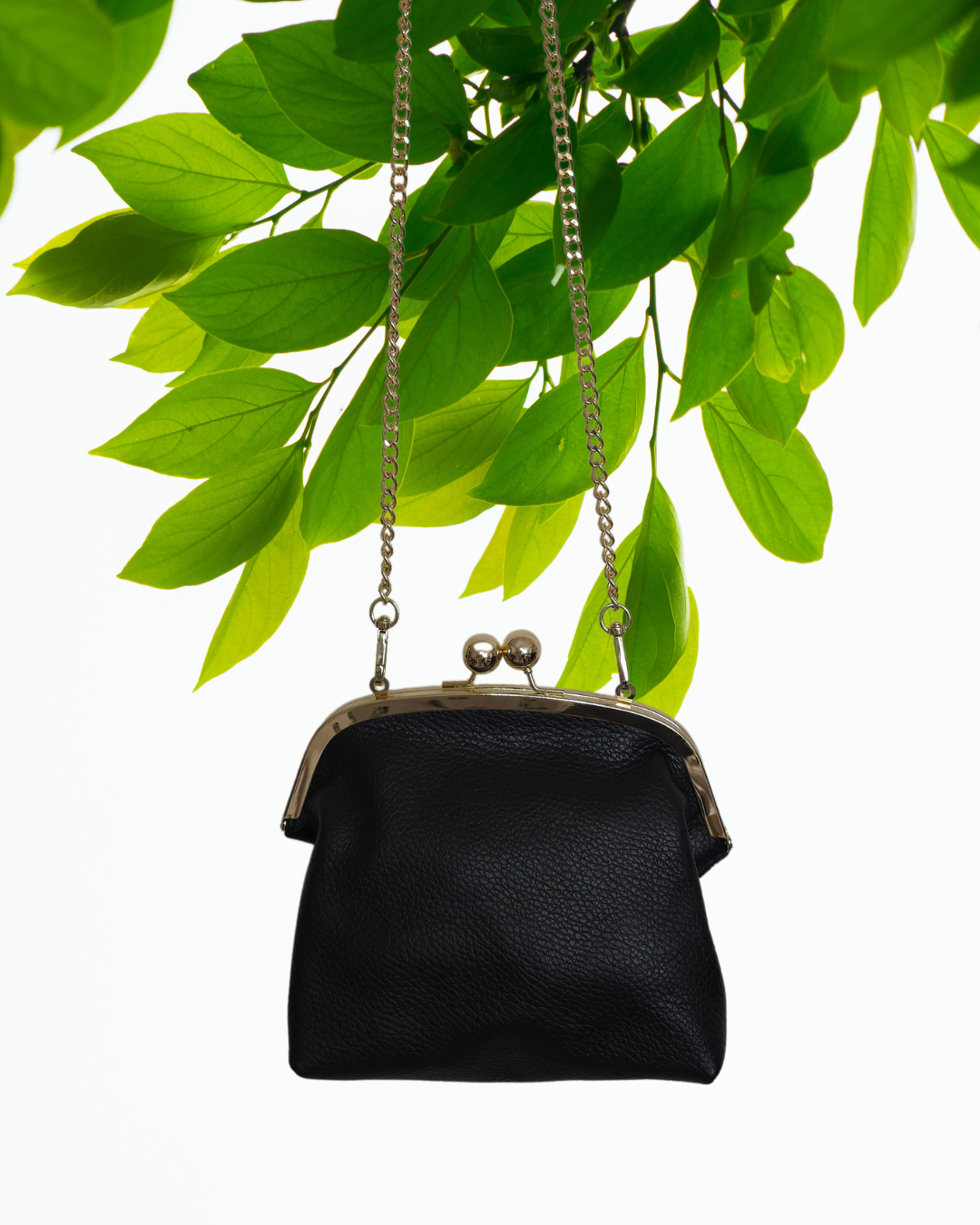 Ontdek onze prachtige Retro Portemonnee tas, gemaakt van 100% hoogwaardig leer in een tijdloze zwarte kleur. Dit accessoire geeft elke outfit een vleugje elegantie en verfijning. De tas is voorzien van een stijlvolle gouden kettinghengsel en een handige drukknoopsluiting met gouden bolletjes, wat een vleugje luxe toevoegt aan dit chique ontwerp.